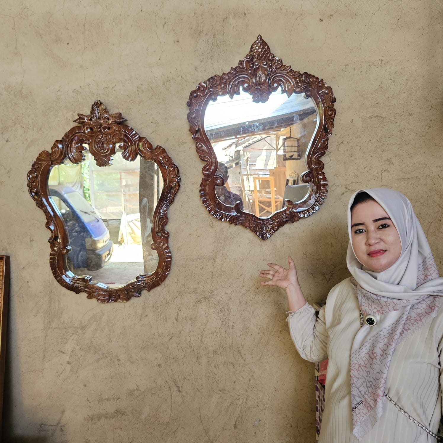 Cermin Hias Rias Dinding Ukiran Minimalis Custom Full Kayu Jati