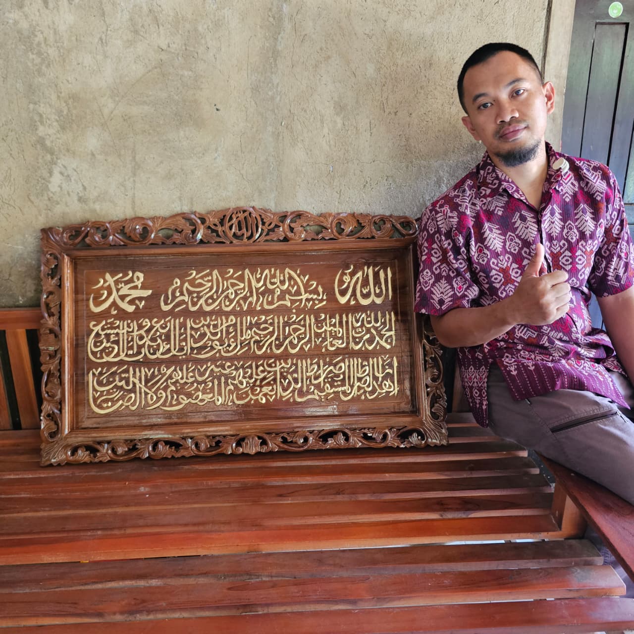 Kaligrafi Ukiran Al Fatihah Custom Minimalis Modern Full Kayu Jati