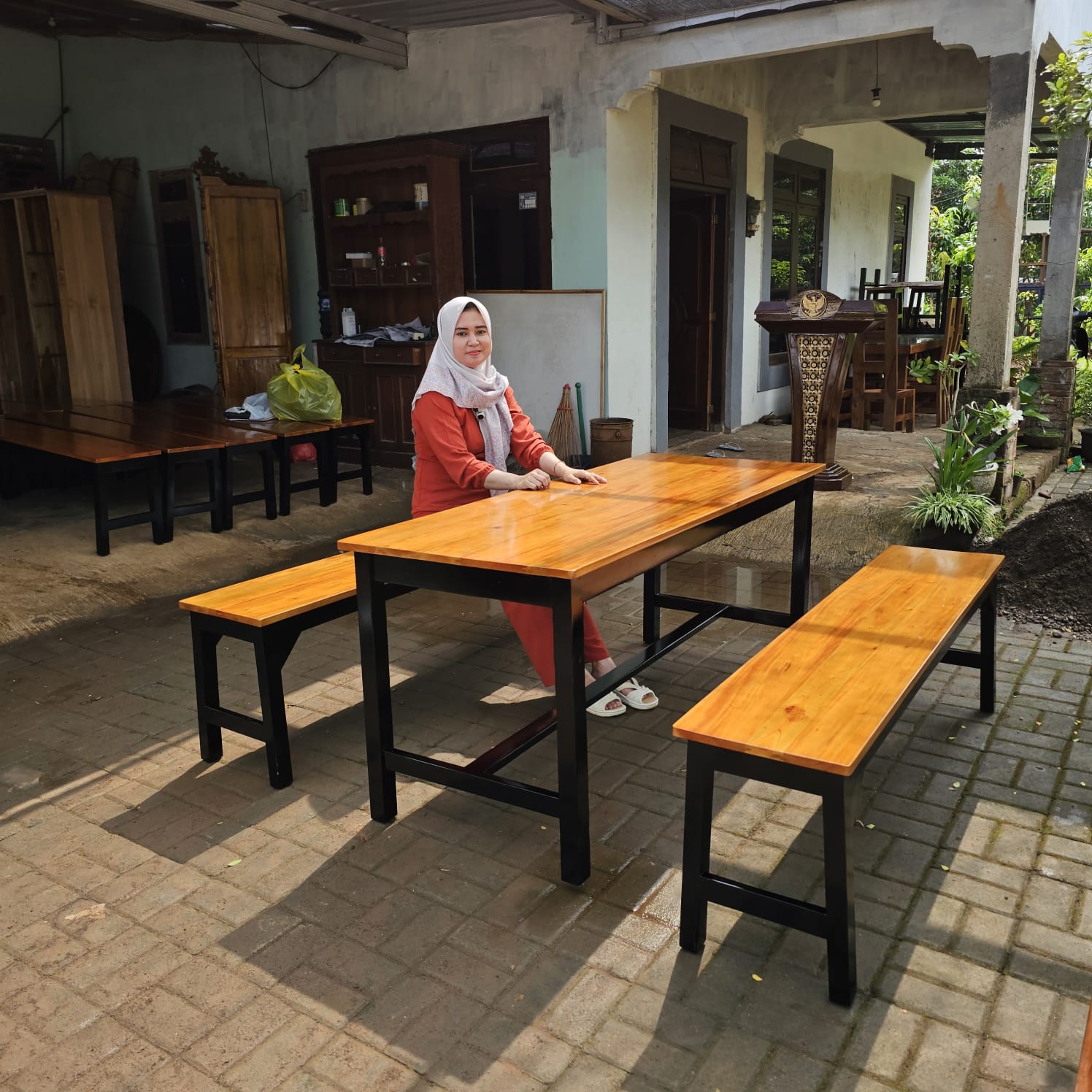 Lengkapi usaha kuliner Anda dengan Set Kursi Meja Makan Bakso Kayu Mahoni Custom dari pengrajin Furniture Jepara.