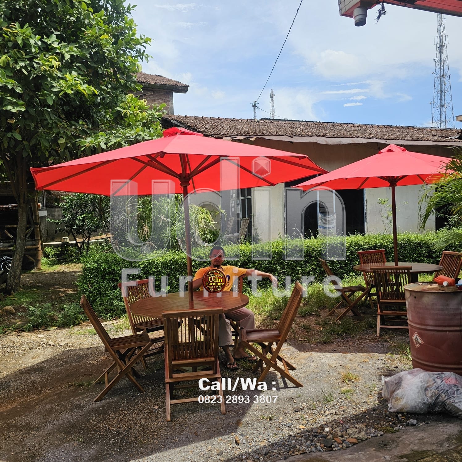 Kursi Meja Payung Taman Cafe Warna Merah Outdoor Full Kayu Jati