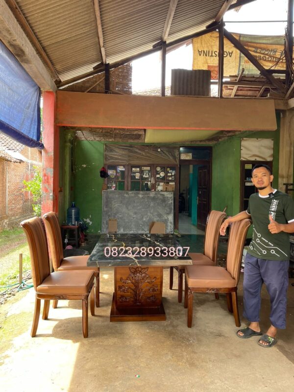 Meja Makan Portoro gold Kombinasi Kursi Salur Ukiran Mewah Full Kayu Jati - Udin Furnitures